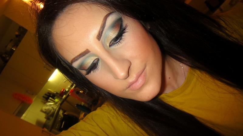 Coucou !! Alors j'ai suivi vos conseils et tenté un maquillage plus soutenu que ce que j ai l'habitude de faire, j'ai essayé un make up libanais, après digne de ce nom je ne sais pas c'est mon 1er teste, à vous de me dire. Je voulais mettre des faux cils pour compléter le look mais j en avais pas