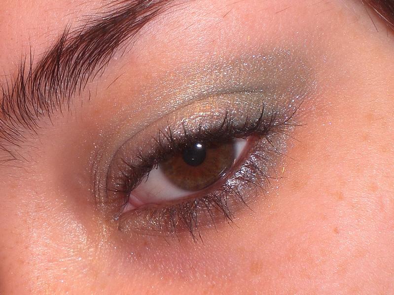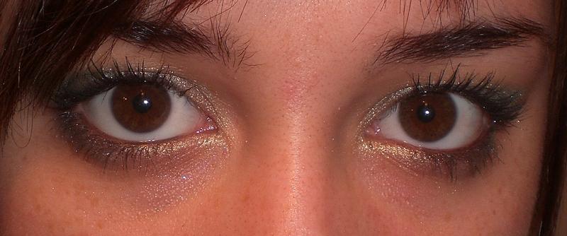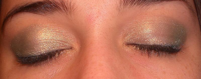 Un vert emeraude carrésé par son jaune tendre accompagné de son masacara noir intense et fin trait de khol noir...