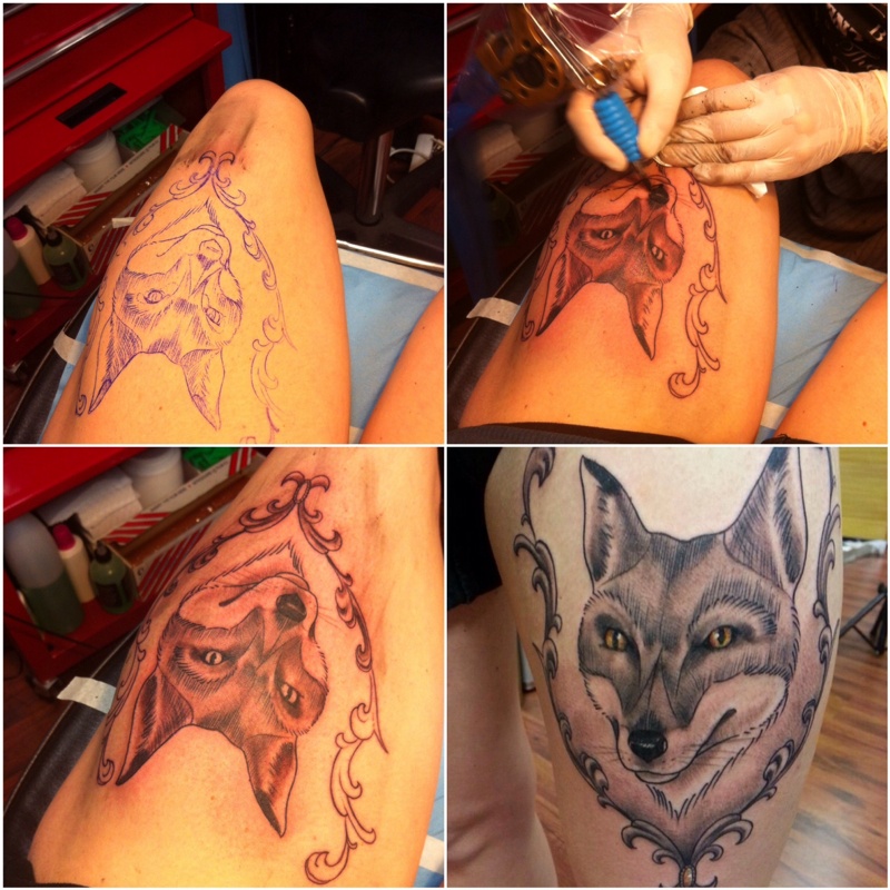 J'adore j'adore j'adore!! je rêve d'une grosse pièce dans ce style sur la cuisse, mais j'ai une question un peu con! Quand tu fais une pièce de cette taille sur la cuisse pendant combien de temps est-tu condamnée au short pour la cicatrisation? ça ne doit pas être pratique du tout en hiver par exemple. Je me pose des questions bizarres des fois