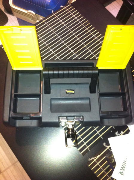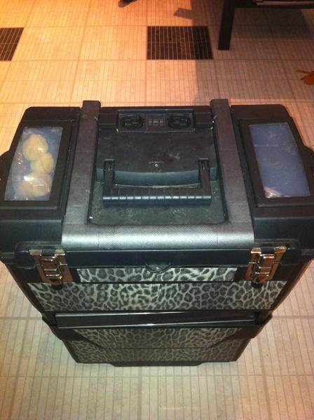 sur le dessus du trolley, deux boites de rangements