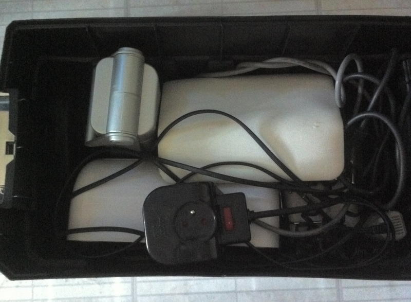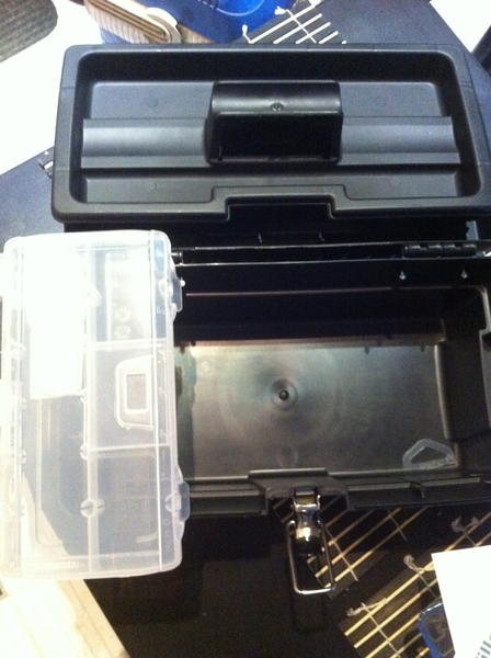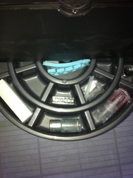 dans le bas, une lampe UV, une lampe de travail, un aspi,une ponceuse, une rallonge, il resterais une place pour un repose bras