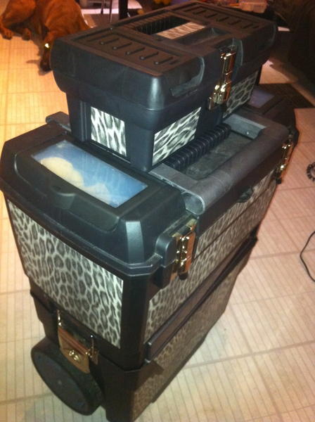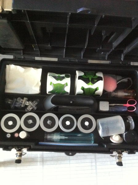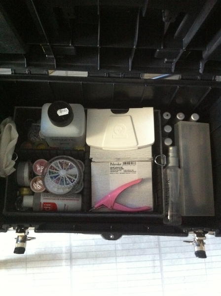 la partie basse de la malette haute, toutes les décos, paillettes, peintures, pinceaux, vernis, gelpolish....