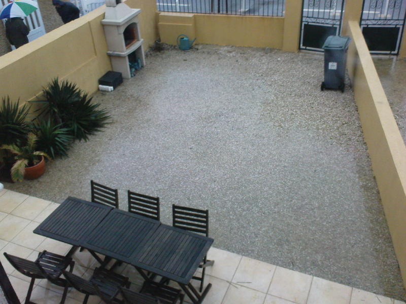 Photo 4 : C'est en fait toute l'eau des voisins et du chemin qui coule dans le jardin. Votre voisin regarde votre palier et vous previens que l'eau est pas loin