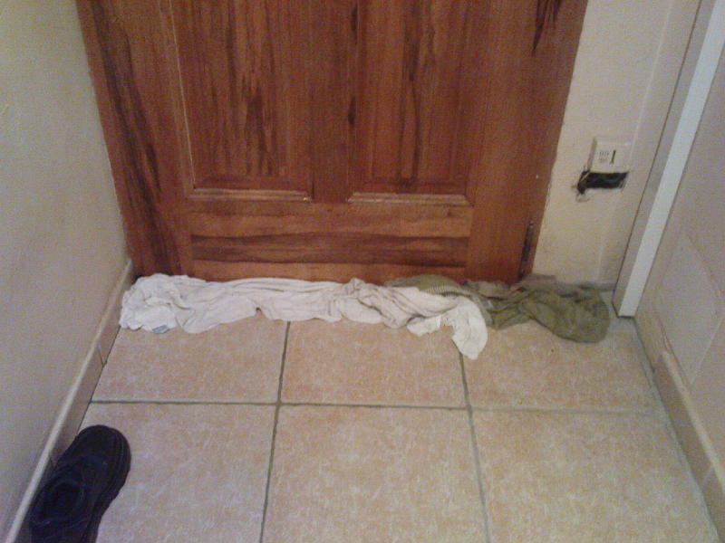 Photo 8 : Malheureusement l'eau commence déjà à s'infiltrer sous la porte et y a plus trop trop de serviettes. Alors là je vous conseille d'appeler les pompiers.