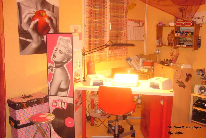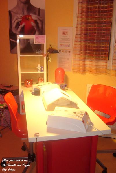 Vu que chez moi, c'est une maison pas très grande, je n'ai pas la possibilité de faire une pièce exclusive pour la pose d'ongles .... je me suis fais ce petit coin dans le salon ....