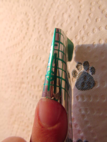 Photo 9 : Je lime les parallèles la surface de l'ongle (le gel) pour lui donner une forme ,petit coup de bloc blanc et puis un coup de brosse pour éliminer les poussières.