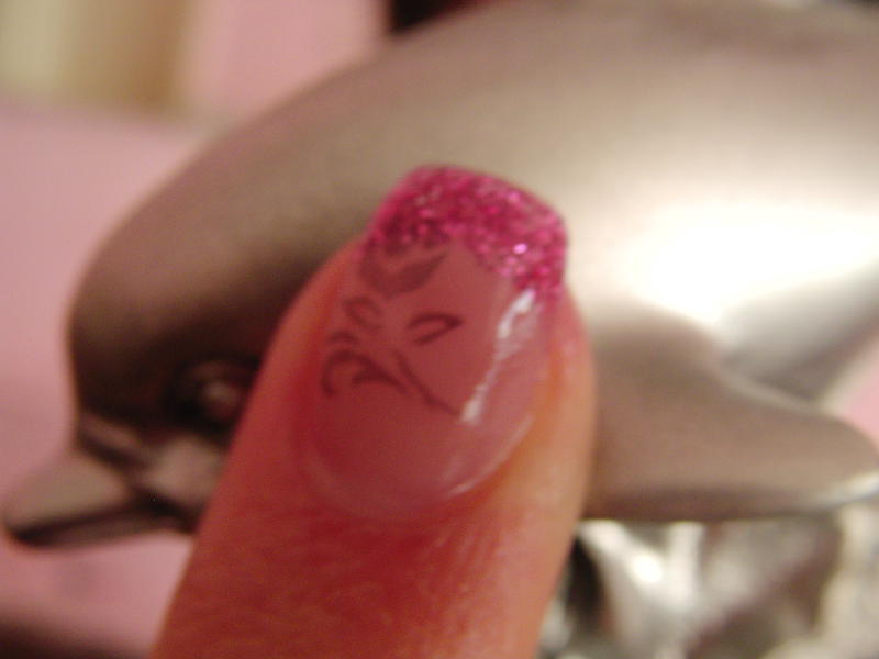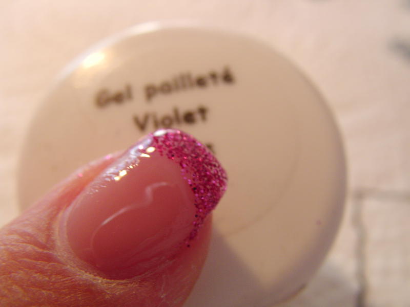 Photo 11 : Une fois catalyser je ne dégraisse pas!Je fais ma french (moi j'ai choisi les paillettes violettes)je fais bien mon sourire puis je catalyse 2 minutes.
