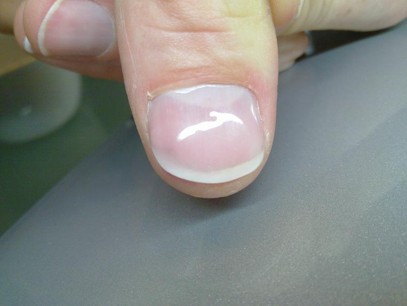 J'ai effectué une réparation (au gel) après avoir été sauvagement agressé par une très belle écharde de bois qui a souhaitée prendre place juste entre l'ongle et la matrice... :bebeouin: ..:bebeouin:..