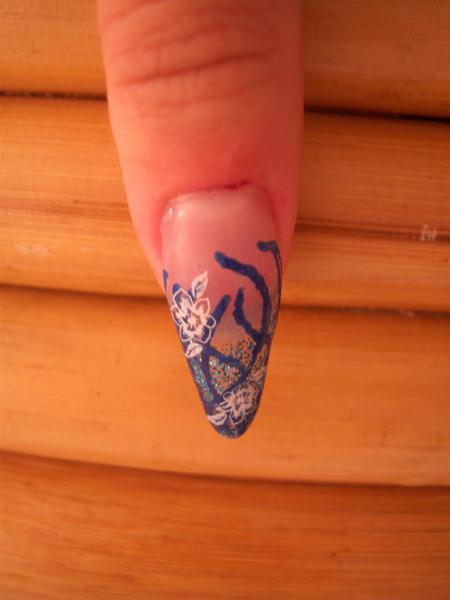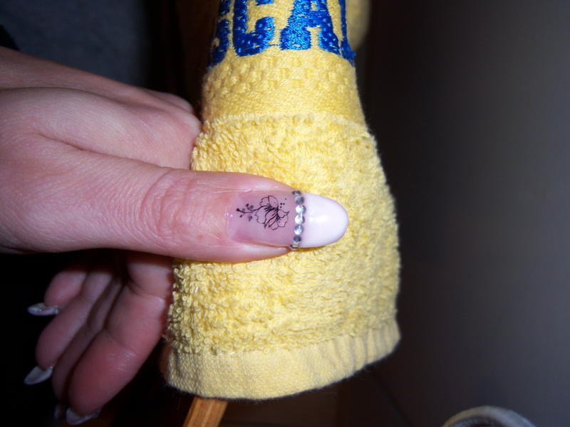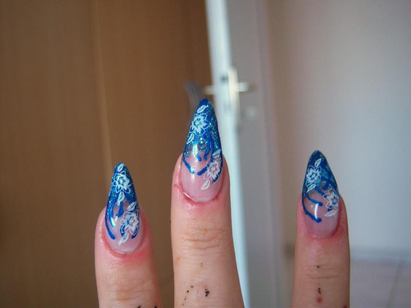 les photos avec la pose en bleu le stillet et l' autre photo avec la french et les strass le forme en amande ...