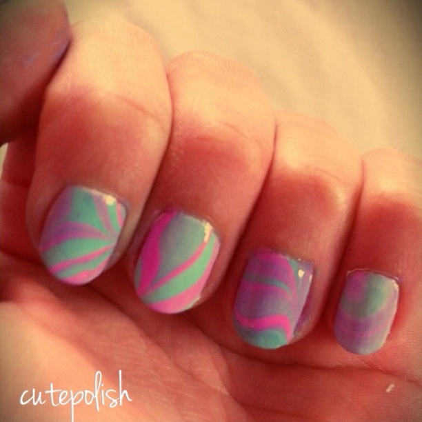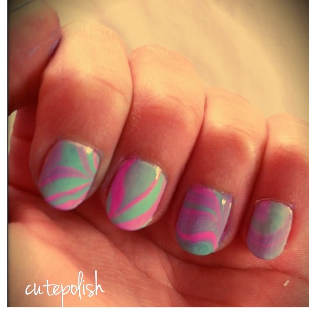 Voici mon tout première essais en water marble, soyez indulgentes je ne métrise pas encore cette technique :p Mais bon pour un début, vous trouvez sa comment ? :)
