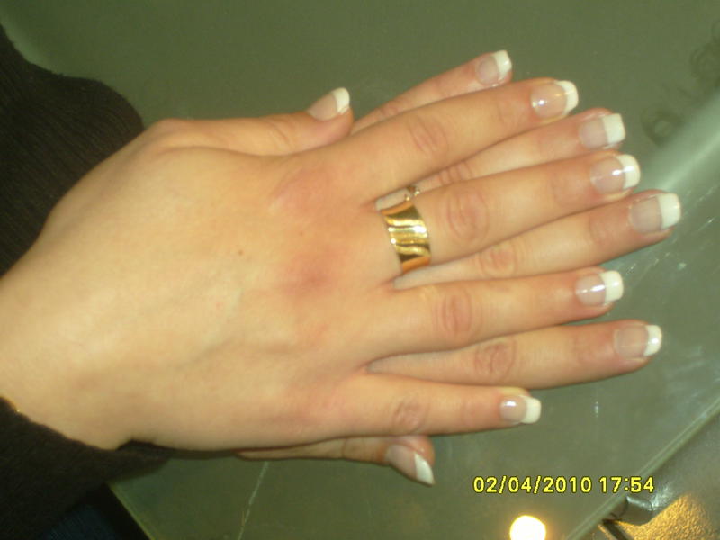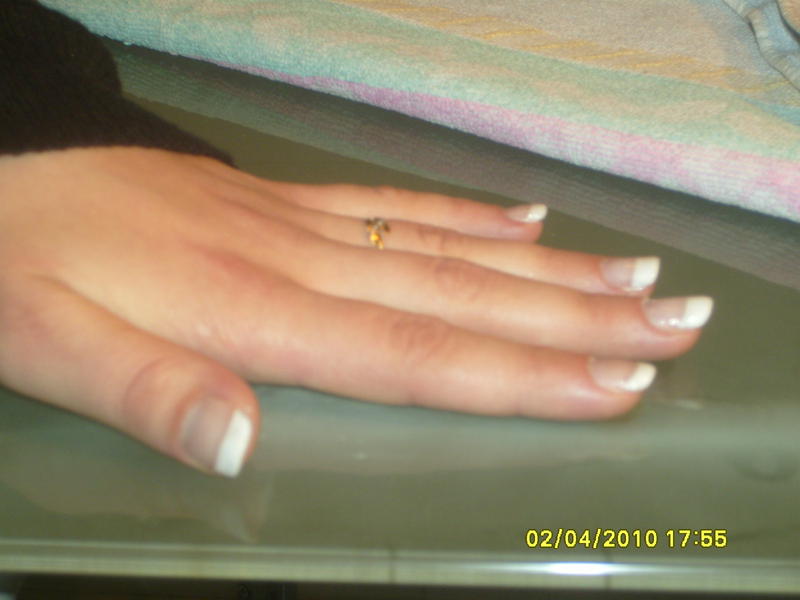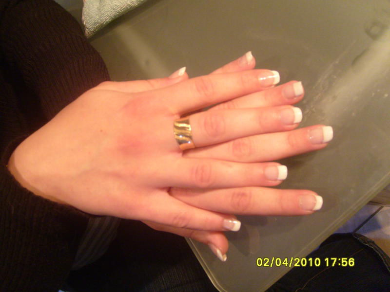 je dirais que le french n'est pas pareille partout, elle est droite a certains doigts et moins a d'autres, un peu épaisse aussi a certains doigts, et tes ongles n'ont pas tous la même forme!