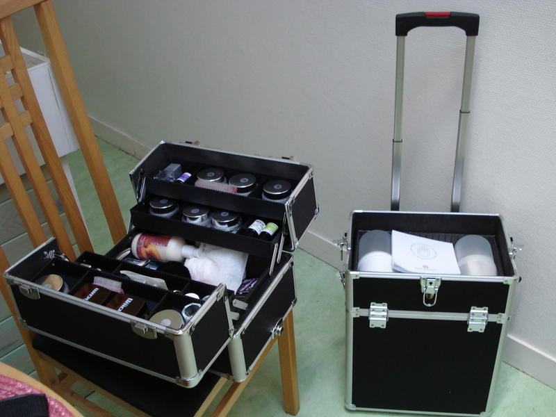 j ai le meme trolley mais en gris martelé, j'ai quasiment le meme materiel que toi dans mon trolley, c'est marrant, quand j ai vu la photo j'aurais cru voir mes produits!!!!