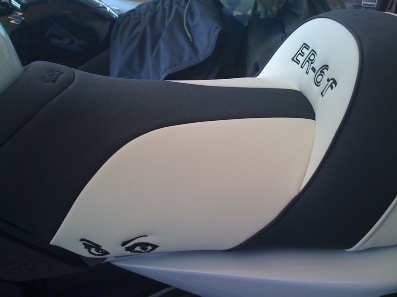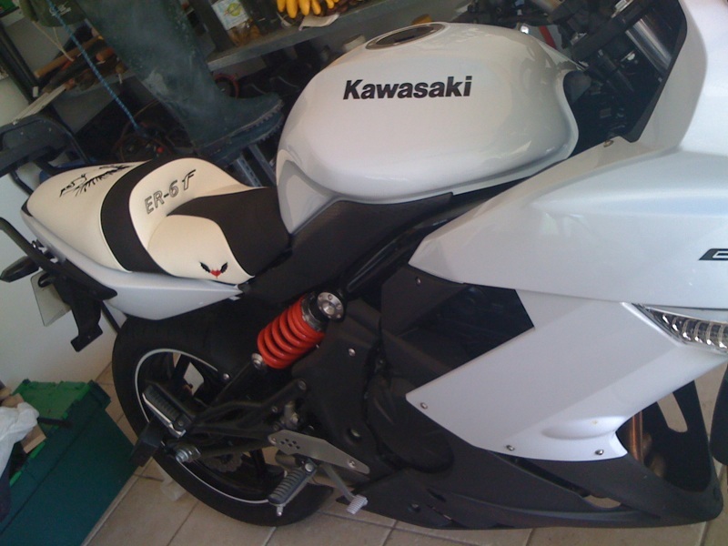 Et l'année dernière mon mari m'a offert pour mon anniversaire (eh oui il est super !) une er6 f blanche. Je l'ai faite abaissé car je suis petite ! Selle personnalisée. Alors oui on peut être féminine et motarde : j'ai les ongles super long, et je porte des talons de 12 cm (sauf quand je fais de la moto) !!! Bref vivement que mes enfants soit grande que je puisse en profiter plus car pour l'instant je trouve que j'en profite pas assez.