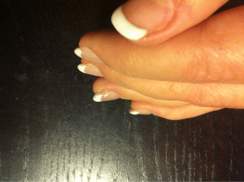 Bref... C'est mieux... Mais french trop large (car elle voulait cacher comme ça le fait que je n'avais pas d'ongle et donc qu'on voyait les démarcation ) ...