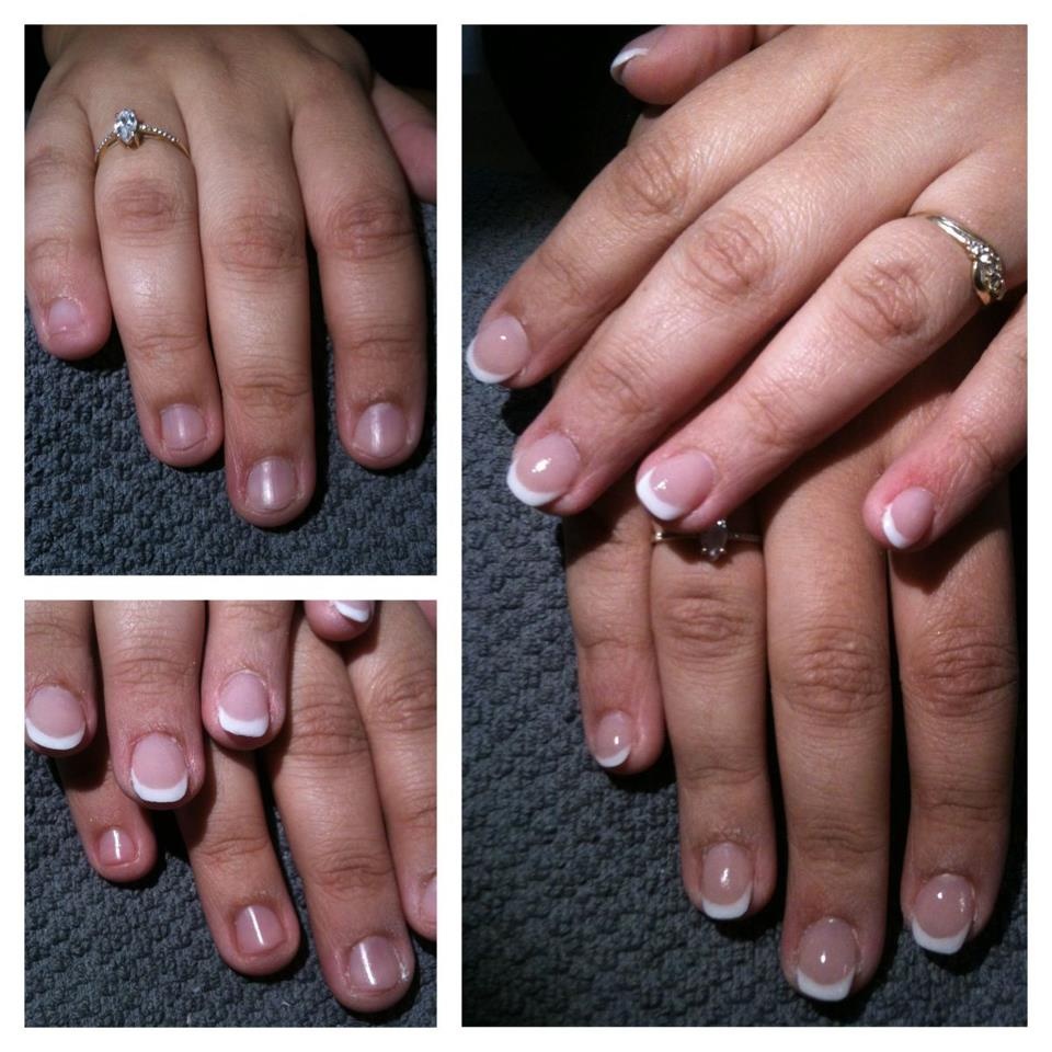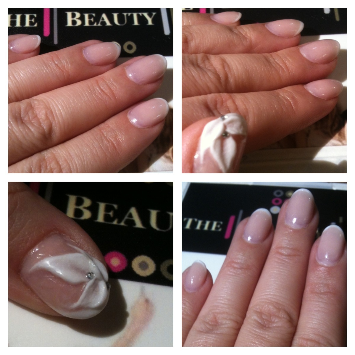 Sur doigt d'entrainement, car malheureusement, pas trop la clientèle pour les poses + fantaisie! Mes 1er essais dans le style. Façon stiletto version courte et style Edge (ou avoisinant!!!). Mes clientes french tradi auront peut être des envies de changment...