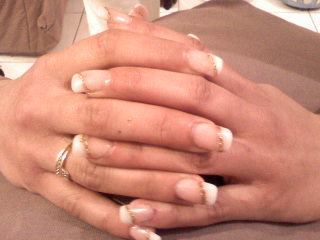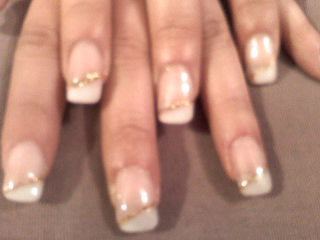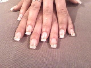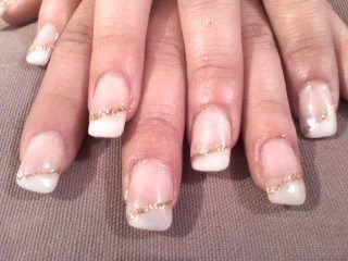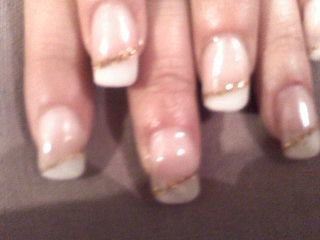 voilà j'ai fait ma première french en biais avec un trait de liner doré+paillettes