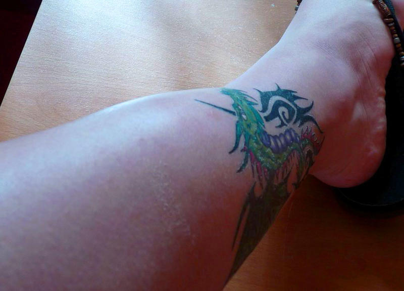 les couleurs sont superbes!! moi ma hantise c'est que sa s'estompe et que du coup ce soit pas joli.. mais bon au pire jle ferais retoucher.. meme si les dragons c'est pas trop mon truc c'est super joli!!