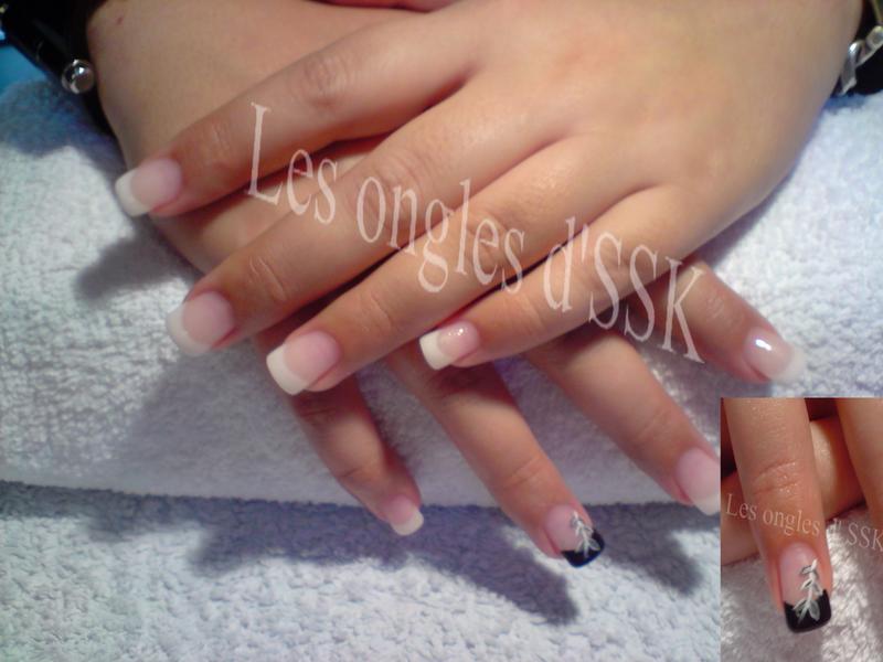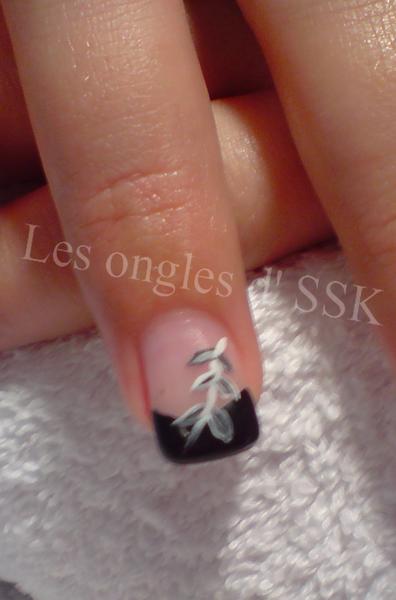 Très jolie pose, j'adore le doigt avec la french noire et les feuillage, superbe!!!!!!