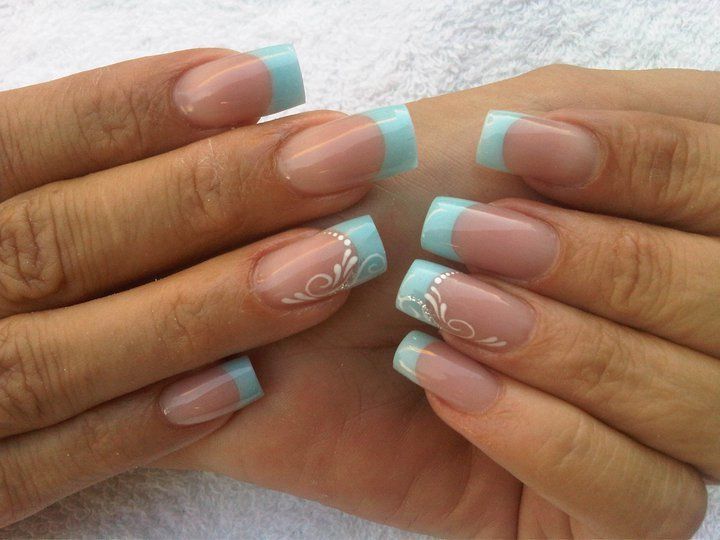 Un bleu pastel en french, camouflage WARM retour zone des cuticules en Opaque pink.
