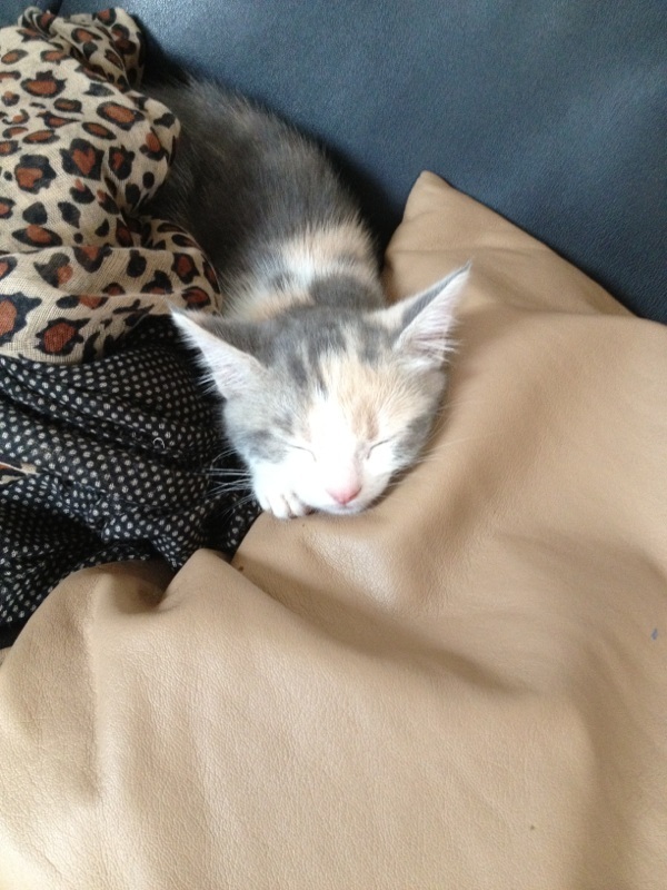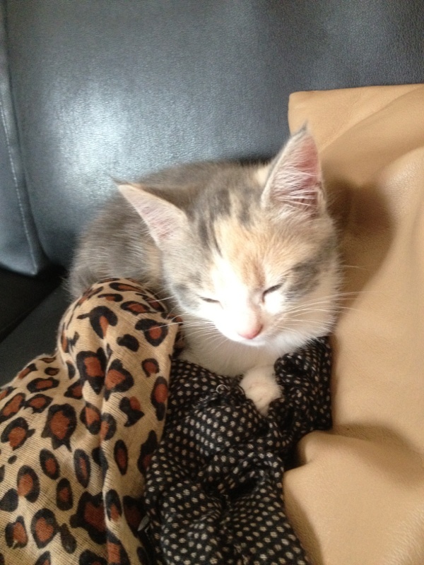 la elle dors sur mon echarpe elle la kiffer :) mon chien dors pas loin est a tjr pas capter lool