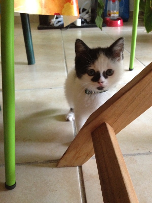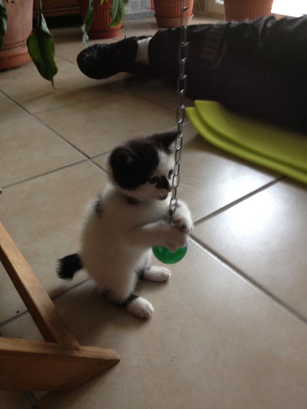 on dirait quel a des chausette mdrElle été sevrée parce que la proprio les nourrissaient au biberon vu que la mère avait pas assez de lait donc elle les a mis plus tôt aux croquettes.