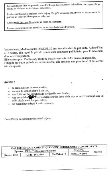 moi aussi je patauge encore avec les manoeuvres ... je trouve que le DVD des nouvelles esthetiques (apparemment c'est le même que le nouveau dvc d'éducatel) est pas mal pour s'entrainer , tu devrais te le procurer je crois que ca t'aiderait pour les soins visages .. Pour le CAP tu fais en fonction du sujet et non de ton modèle . Ton modèle peut avoir 25 ans par exemple et tu tombes sur un sujet genre "une dame de 50 ans à une peau ridée ... Courage carry on est tous dans la même galère malheureusement