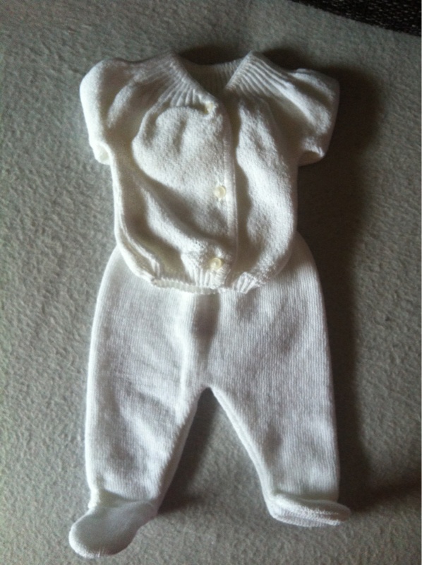 Alors petit ensemble blanc (pantalons avc pieds et petite veste de naissance)