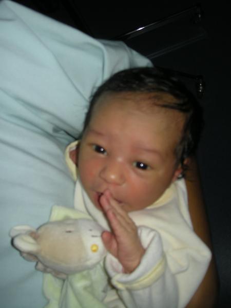 22h17, tout ce que j'ai le temps de voir c'est un petit bébé tout gris et amorphe que l'on ne prends pas le temps de me présenter, on l'emmène directement, me laissant seule dans la salle d'accouchement (même mon chéri à qui on avait proposé d'accompagné l'enfant.