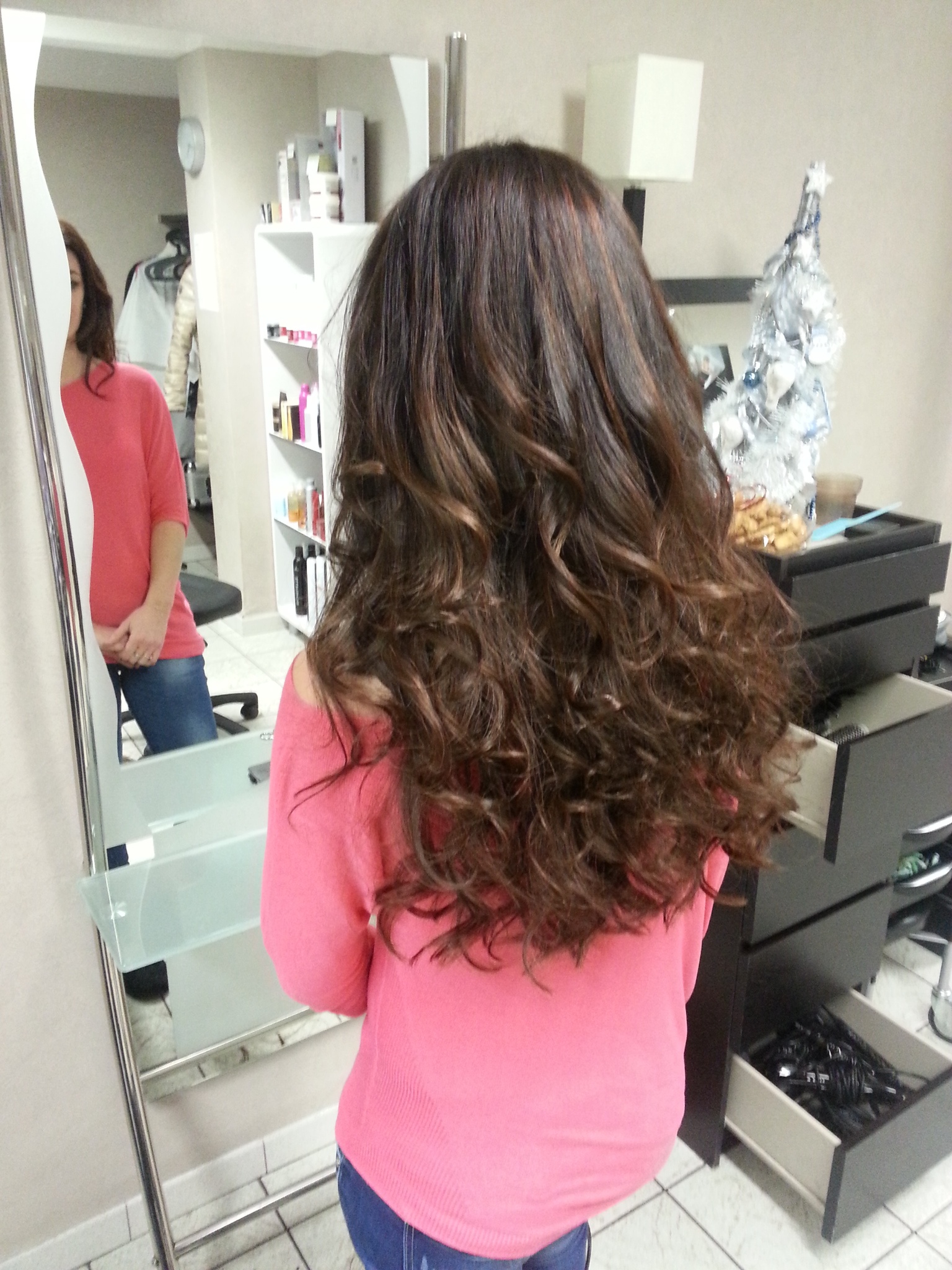 je voulais seulement redonner du volume aux longueurs affinées ( j'ai laisser 7-8cm plus long que les cheveux de mon modèle)