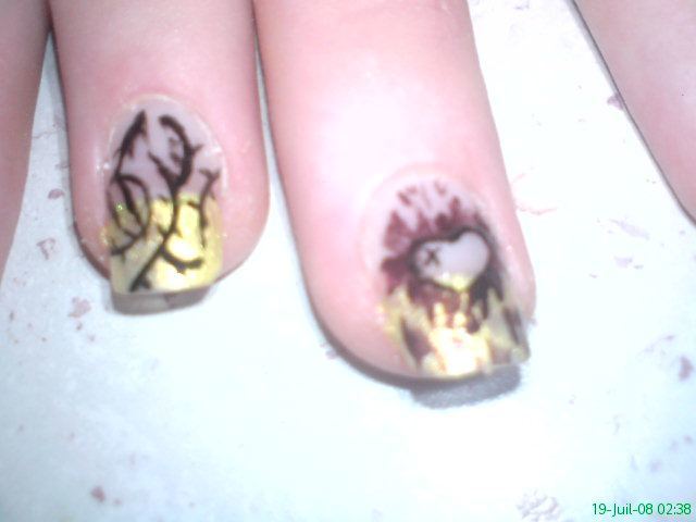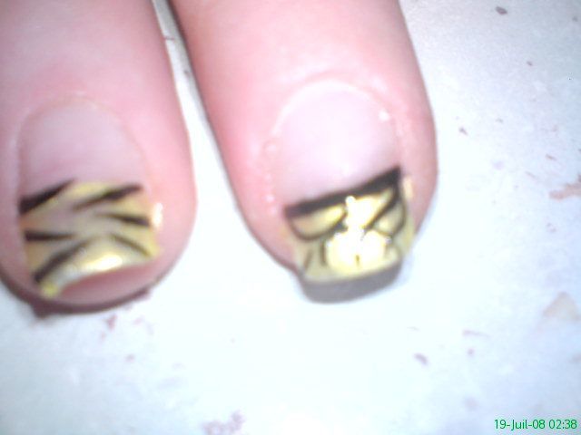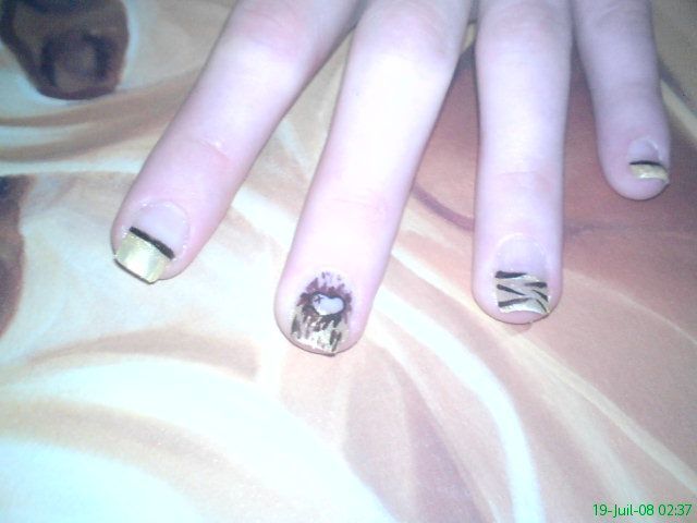 alors voila j'ai une copine et cette copine je lui est proposer un pose sans gel pou le fun et surtout pour ne pas abimé c'est ongles car c'est une bonne cobaye lo voila laisser vos comme pour la deco qui est peu différente a tout les doigt