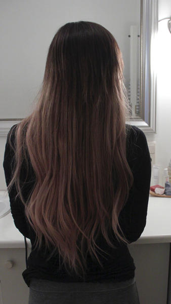 Finalement j'ai totalement changé d'avis et j'ai visé un ombré hair blond clair beige en pointes et chatain aux racines! Donc ce qui signifiait décoloration sur mes extensions pour obtenir le blond beige.