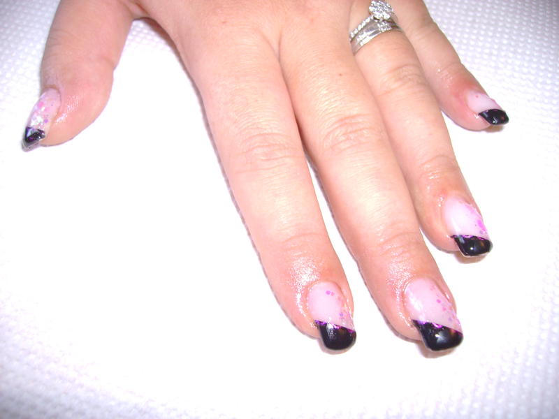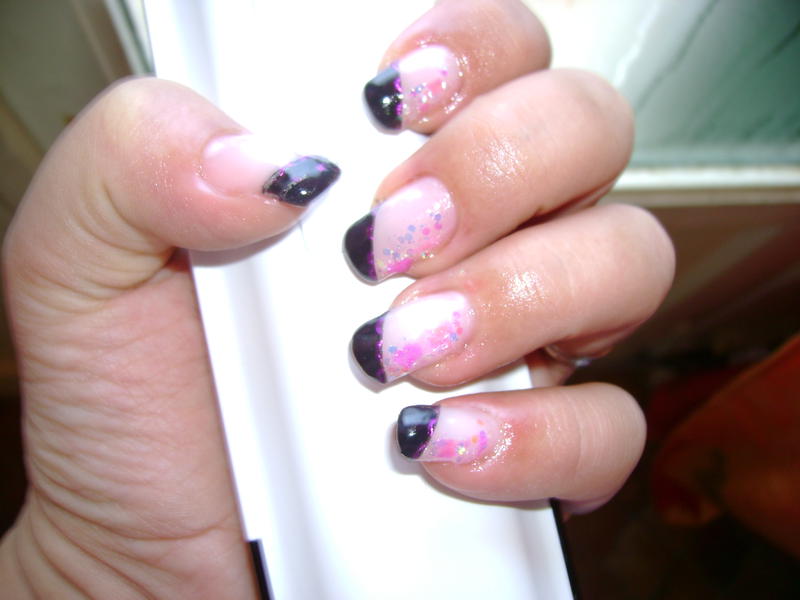 idem pour la french et le bord libre de l'ongle pas assez bordé!! Pour les paillettes essaies plutot de les mettre sous ta construction, ta pose sera lisse et non rapeuse comme elle a l'air sur les photos!!!