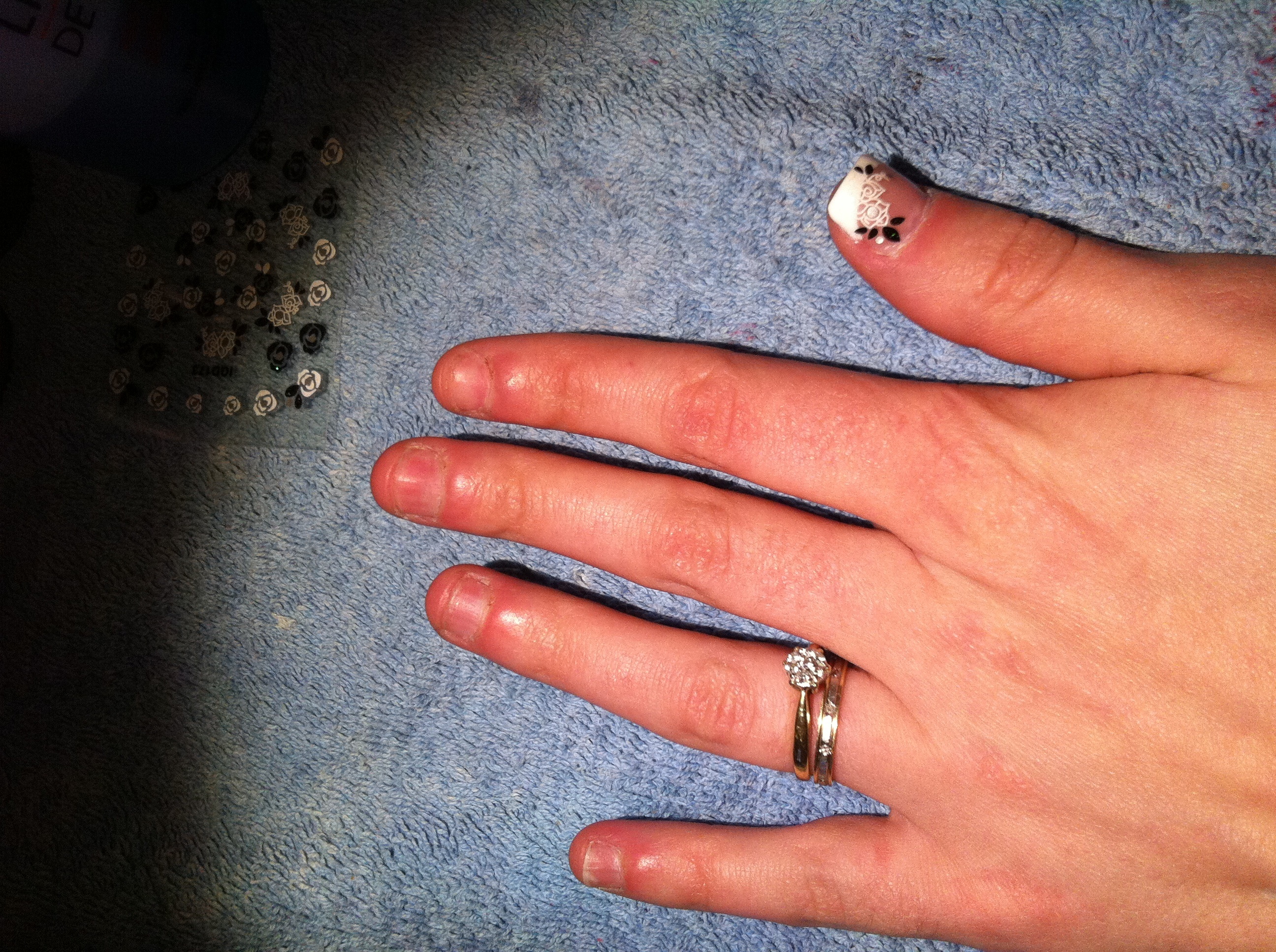 Voici une nouvelle pose de cet apres midi sur mon pouce gauche. Je n'ai pas fait les autres doigts par manque de temps et car j'attends vos commentaires afin de me remettre dans le droit chemin!!