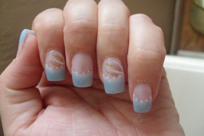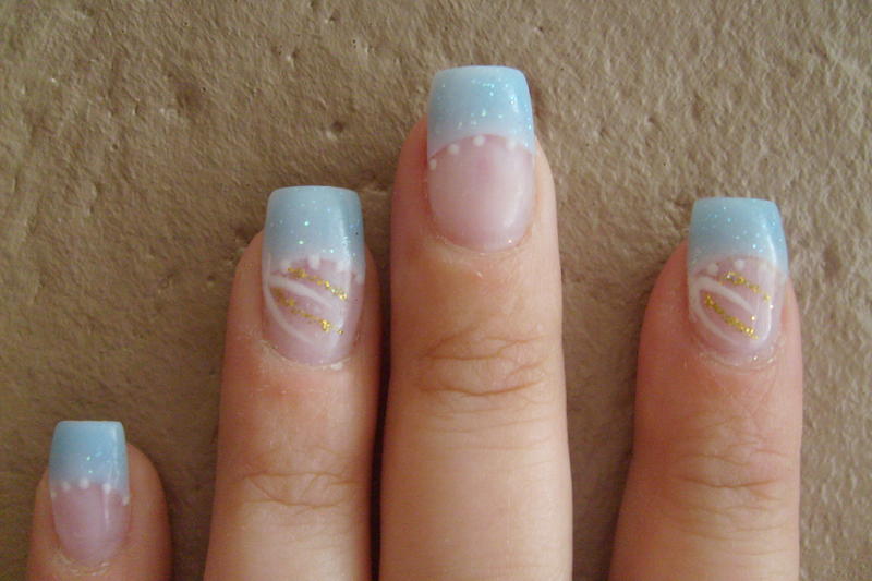 bonsoir à toutes voici ma pose actuelle french bleu pastel avec trait blanc et doré