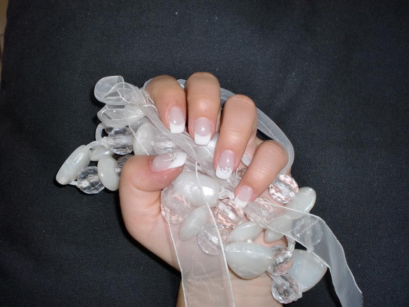 Mon entrainement continue et voici ma troisième pose sur moi (la quatrième en tout). French simple avec l'extreme white, clear base et soft pink builder et non sticky finish de chez professionails. Petite déco sur les pouces et les annulaires (peggy sage). La french peut paraître large, je l'ai voulue comme cela, pour tester ^^.