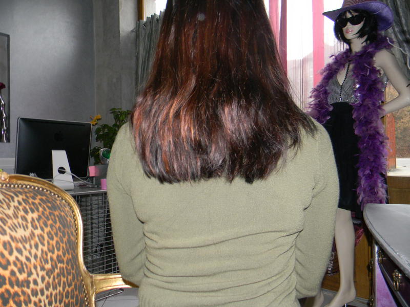 Tu aurais peu être du aussi faire quelques boucles sur les cheveux du dessus....Ont dirais qu'il y à une petites différence de couleurs ( reflet cuivré) Mais sinon ça à l'air bien.