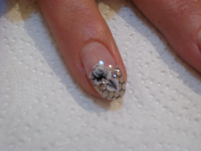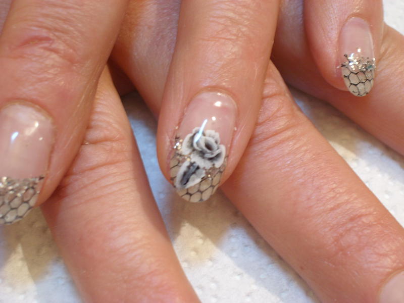 ma cliente a voulu une pose french en résille noire et une déco one stroke sur deux doigts!! pas mécontente!! à vous