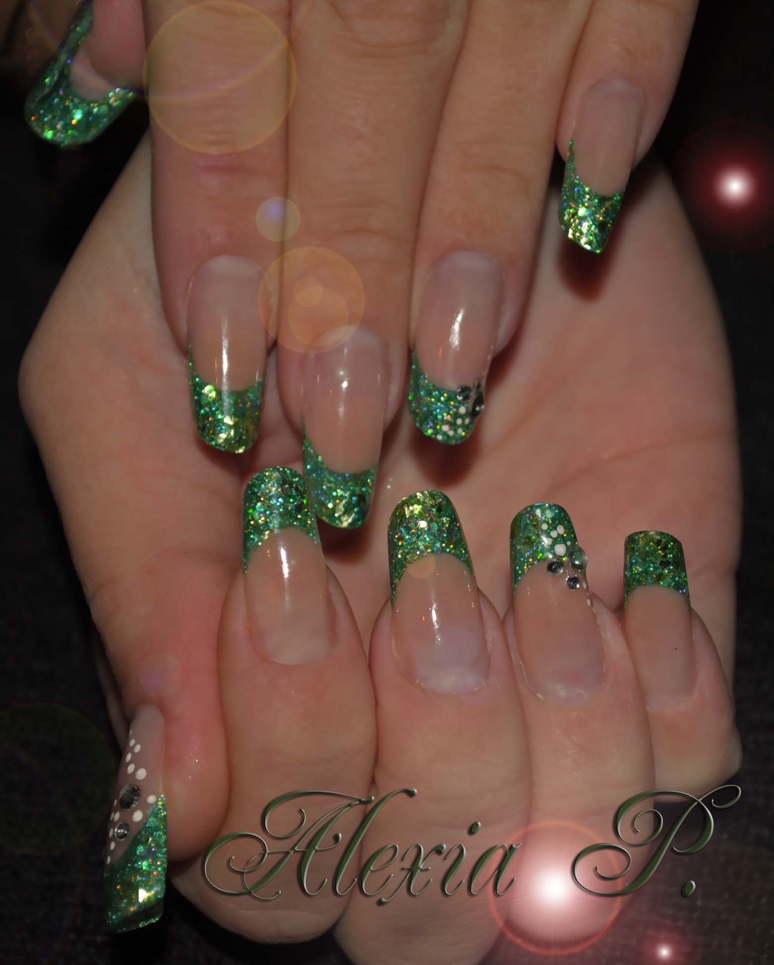 Pour une 3ème pose très jolie, le vert pailletté au top mignon, il faut relève tes chablons pendant la pose mais sincèrement c'est très jolie