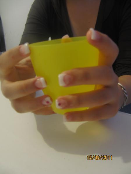 attention, sur certains doigts, ta french et trop large. Pis j'trouve ça bizarre, les ongles qui remontent au bout, mais ça c'est peut être un effet de la photo.