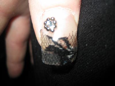 Re : nouvelle pose sur moi vi dommage on voit pas bien, on dirait que la dentelle qui doit former la french n'est pas bien coupée non? ou alors c justement la photo qui fait ca?