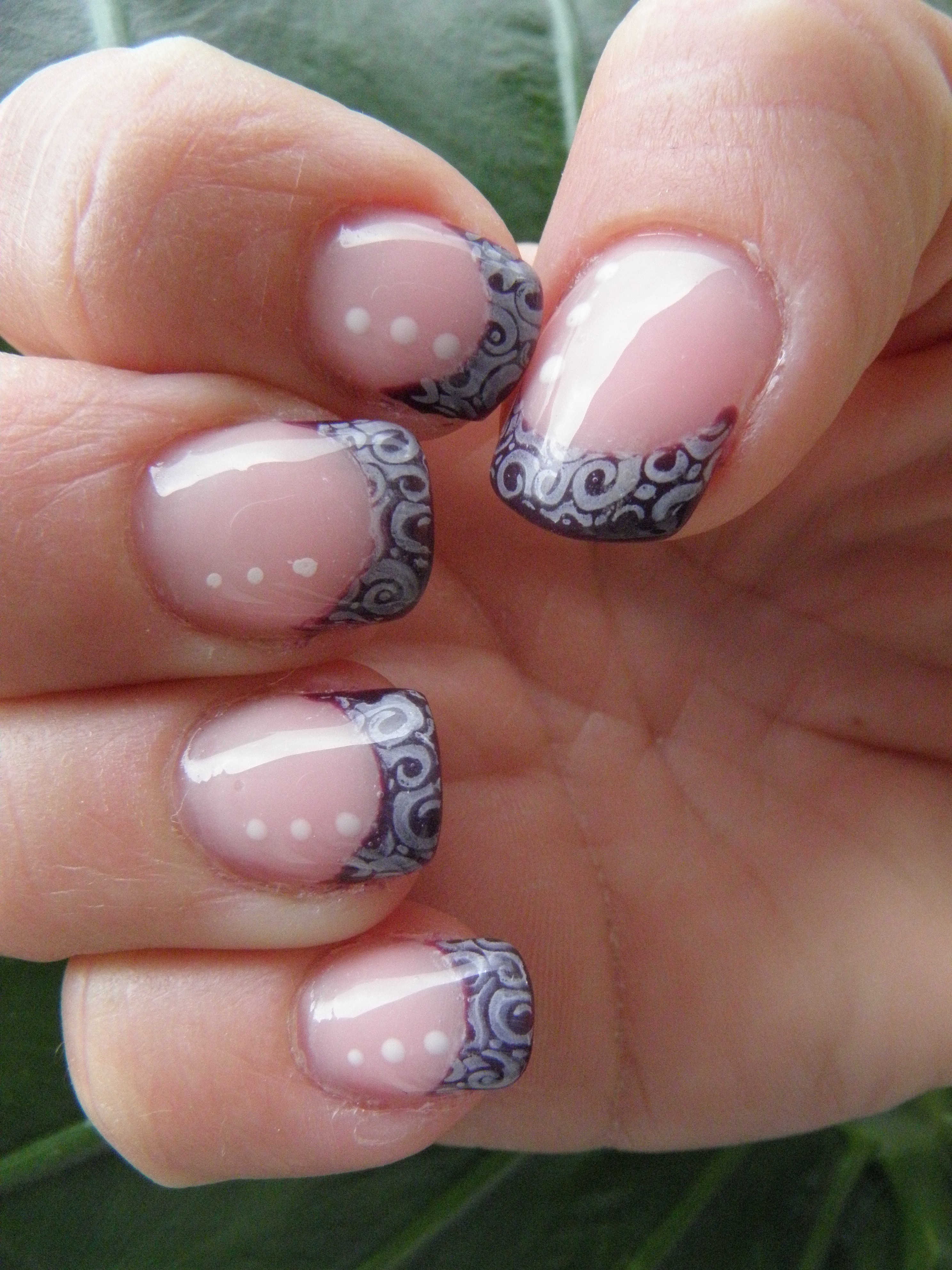 pour la déco car j'ai fais au tampon 1ère fois que je l'utilisais c'est sur une french prune on ne voit pas bien... j'ai oublié de prendre une photo de ma repousse de 4 semaine qui ma foi a bien tenu