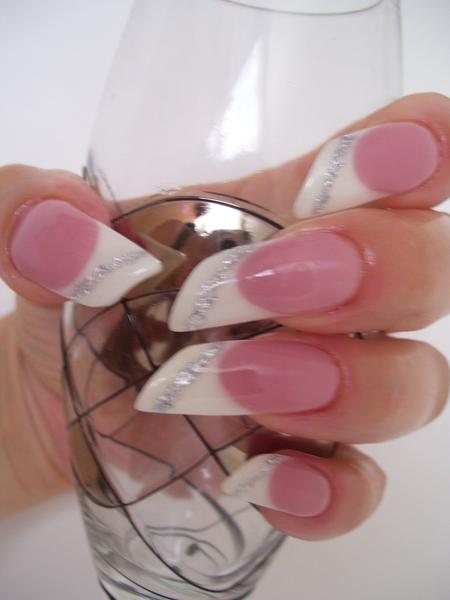 Dommage pour le rose bonbon (on attend la photo au naturel, hein!) mais sinon c'est superbe, belle forme, belle french, et un rallongement parfait dis donc!