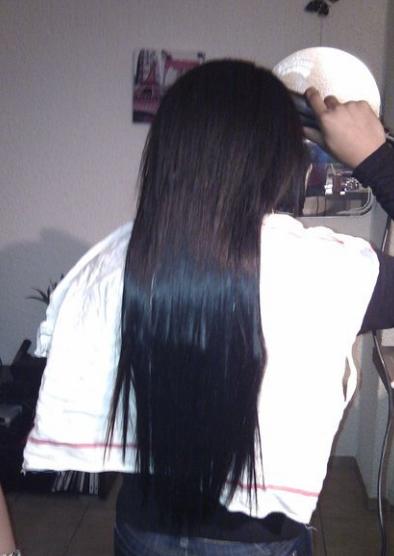 c'est super ici, je viens de découvrir ce forum je suis non professionnel qui commence a faire des poses sur des amies, je pose normalement 100 mèches d'1 gramme par fille j'ai hate d'avoir tous vos avis et vos commentaires. Voici un exemple de ma 2ème pose sur cheveux courts dommage que je n'ai pas le "avant" mais c'est une fille qui avait les cheveux très épais (africaine) au dessus des épaules, elle n'a pas voulu de coupe.