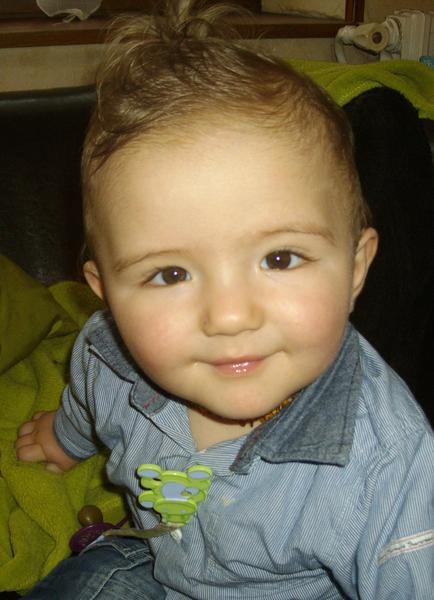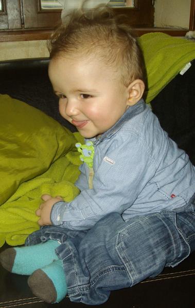 je vous mets une tite photo, pour celles qui mont suivi vont le trouver bien changer. A 9 mois il fait 77cm pour 11kg, et je l'habille en 24mois:8-confused: