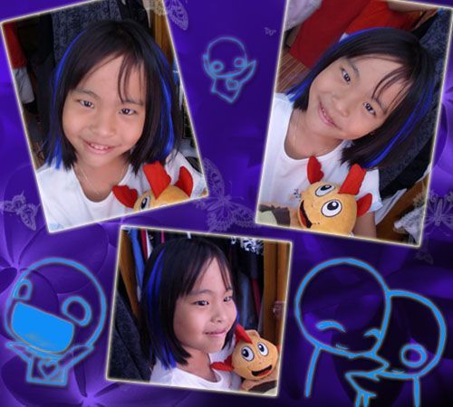 les deux petites bichettes c'est les nièces d'une cliente coiffeuse qui m'avais pris des bleu pour son carré plongeant et des violettes.Elle leur à mis pour tester :)
