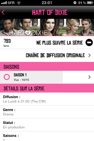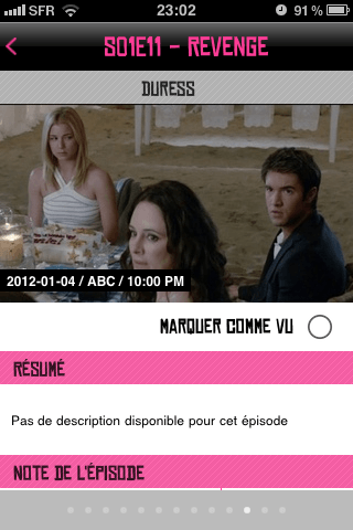 C'est une super appli. Ou tu recherche ta série, tu l'enregistre. Tu coche les épisodes que tu as vu. Comme ça tu as un suivi des séries. Il te dis pour quel série tu es a jour et celle ou tu es en retard. Ta une petite affiche genre ta bibliothèque ebook.