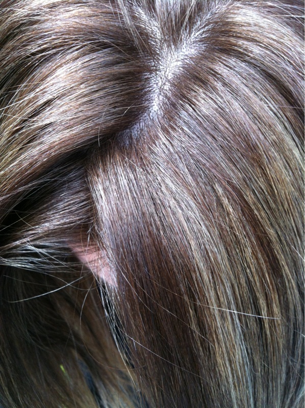 Voici une photo de mes racines,pour te montrer ce qu'un cendré rend..tu vois c'est marron glacé doré quand même malgré le cendré pur,la coiffeuse à même du me rajouter du bleu pur à la couleur cendré pour arriver à quelque chose de moins cuivré,je ne trouve pas que ça fasse terne..