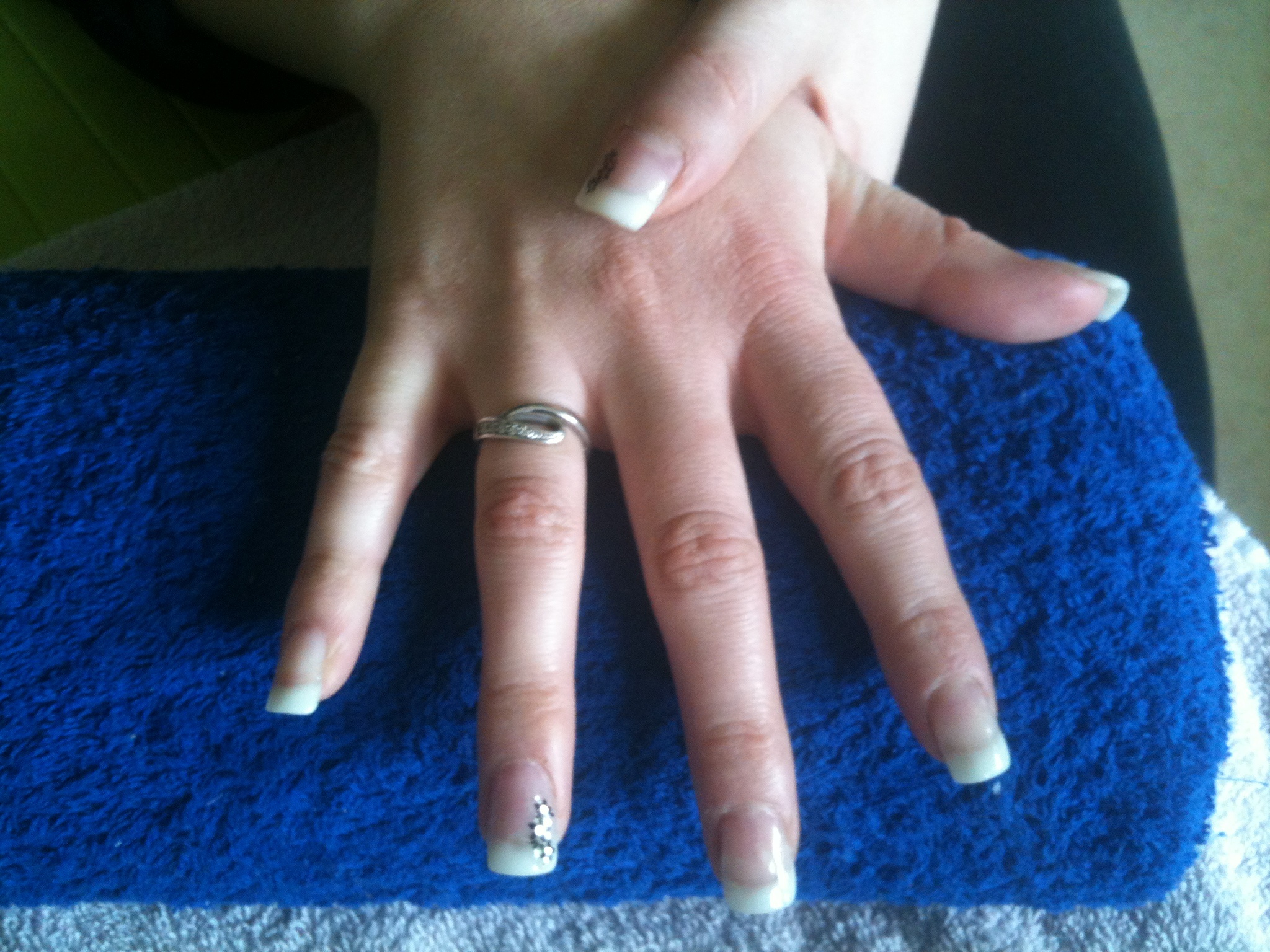 Ma toute première pose était sur ongles crochus donc j'ai galéré et par endroits les tips se cristallisaient ou faisaient des légères bulles. Elle a tenu la pose 1 semaine et puis m'a prévenue que les tips se fendaient et que sur les cotés ça se décollaient.