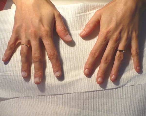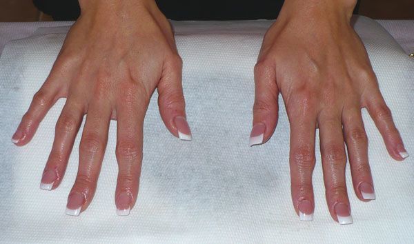 ensuite je n'ai pas du tout proceder sur les 2 mains pareil (encore voulu) pour justement faire apparaitre les points négatifs du protocole de pose a ne pas faire , à vous de me dire sur quelle main j'ai utilisé la bonne technique