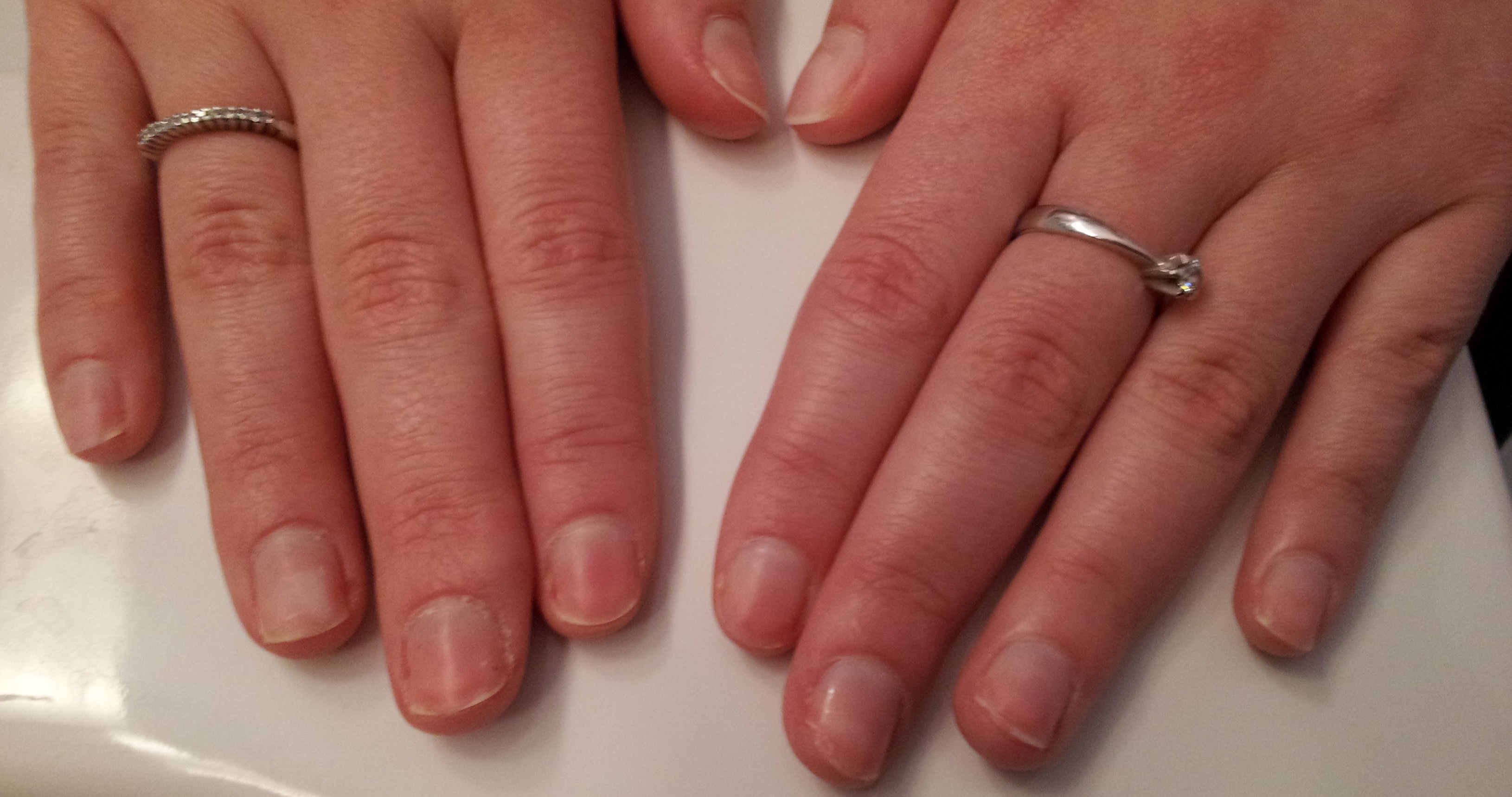 Je suis obligée de mettre du vernis ( je le retire uniquement le weekend). Je sais que j'en ai pour 6 mois au moins pour espérer retrouver mes ongles sains, mais en attendant je trempe mes doigts chaque soir dans de l'huie d'argan et je prend de la levure de bière